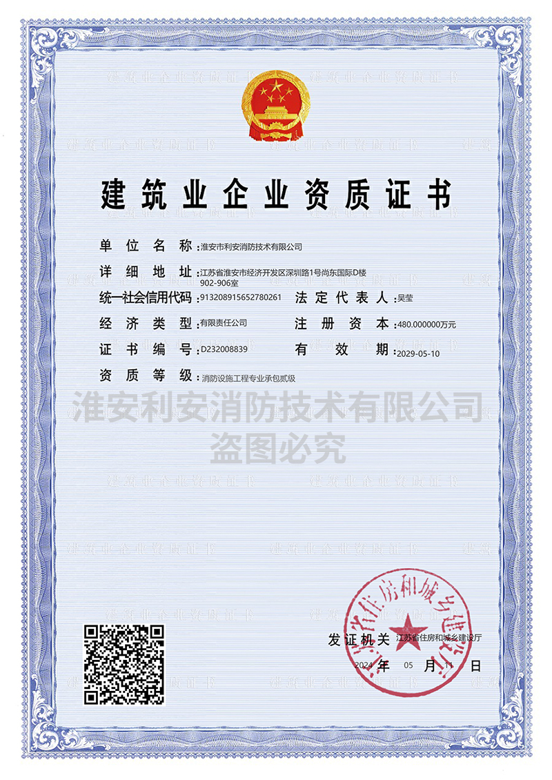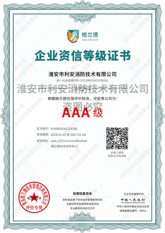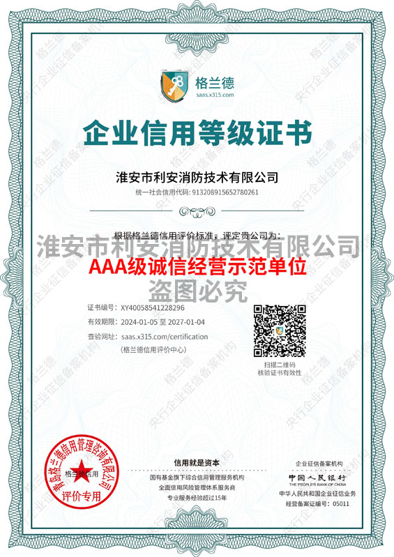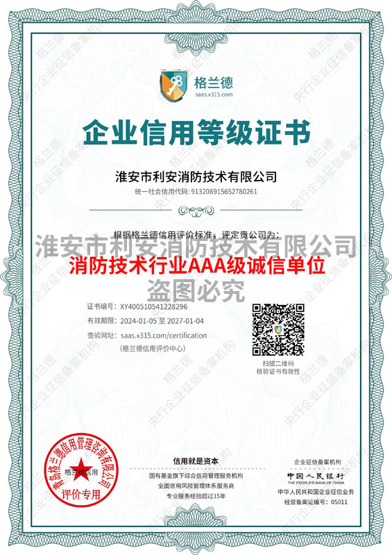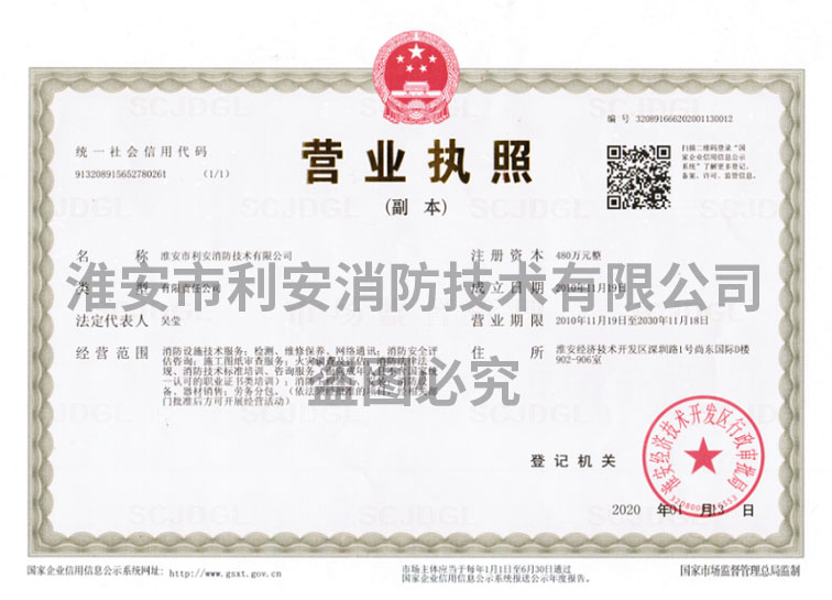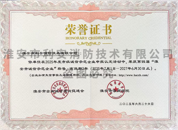 | 热烈祝贺淮安市利安消防技术有限公司荣获“淮安市第二届诚信示范... | [2020-8-6] | ||